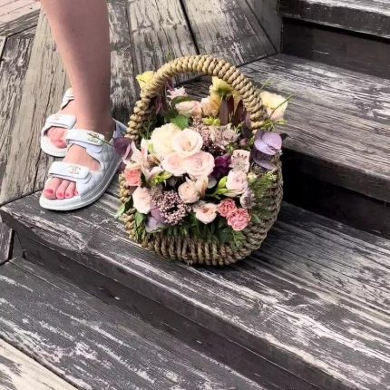 Корзина с цветами «Нежность моя» на свадьбу, на день рождения, маме, подруге , сестре, коллеге