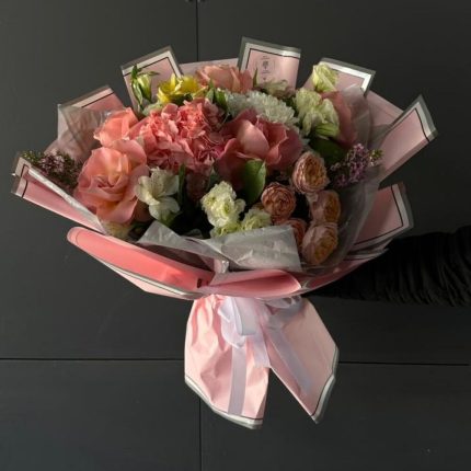 Букет из сухоцветов – лагуруса, хлопка и стабилизированной розы в шляпной коробке «Ирма»