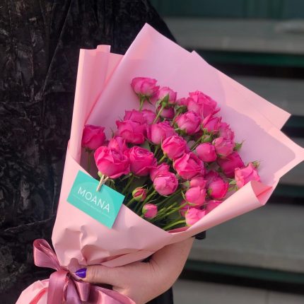 mono bouquet 148 из Пионовидных кустовых роз сорта Silva Pink+ с эвкалиптом