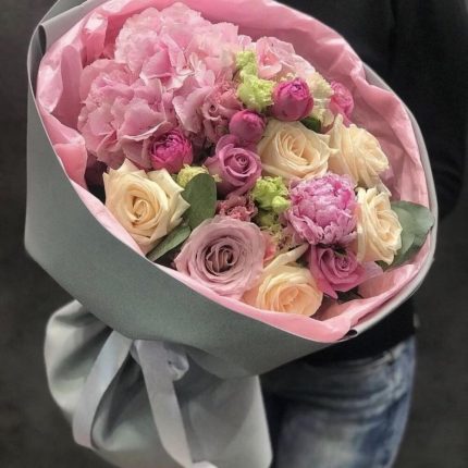 Букет из 101 розового пиона в дизайнерской коробке “Мадам Баттерфляй”