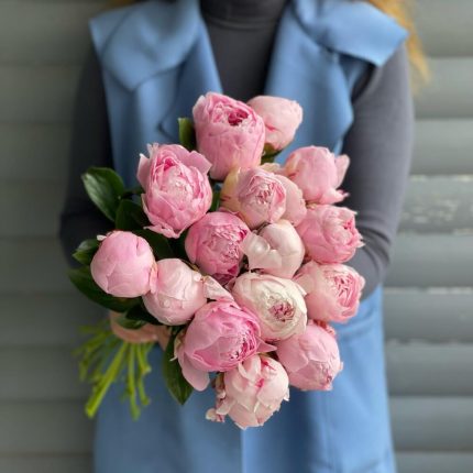 Букет из 15 розовых пионов в дизайнерской упаковке “Принцесса Маргарита”