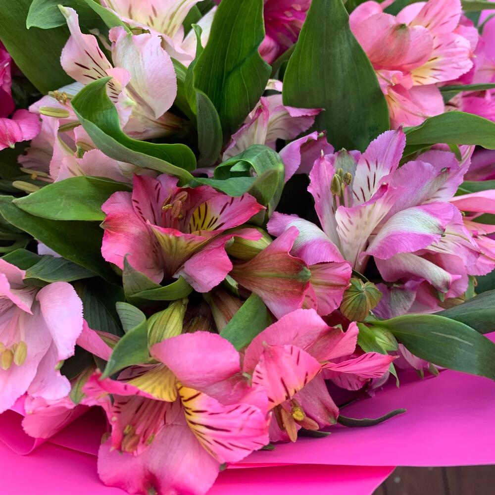 Альстромерия – 17 шт.Лента атласная – 1 шт.Упаковка дизайнерская – 1 шт.