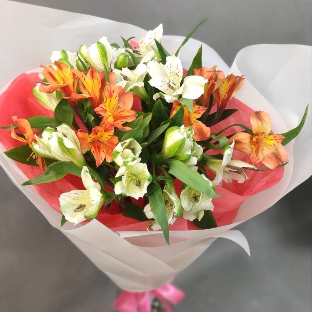 Альстромерия – 7 шт. Открыточка с вашими пожеланиями – 1 шт. Дизайнерская упаковка – 1 шт.