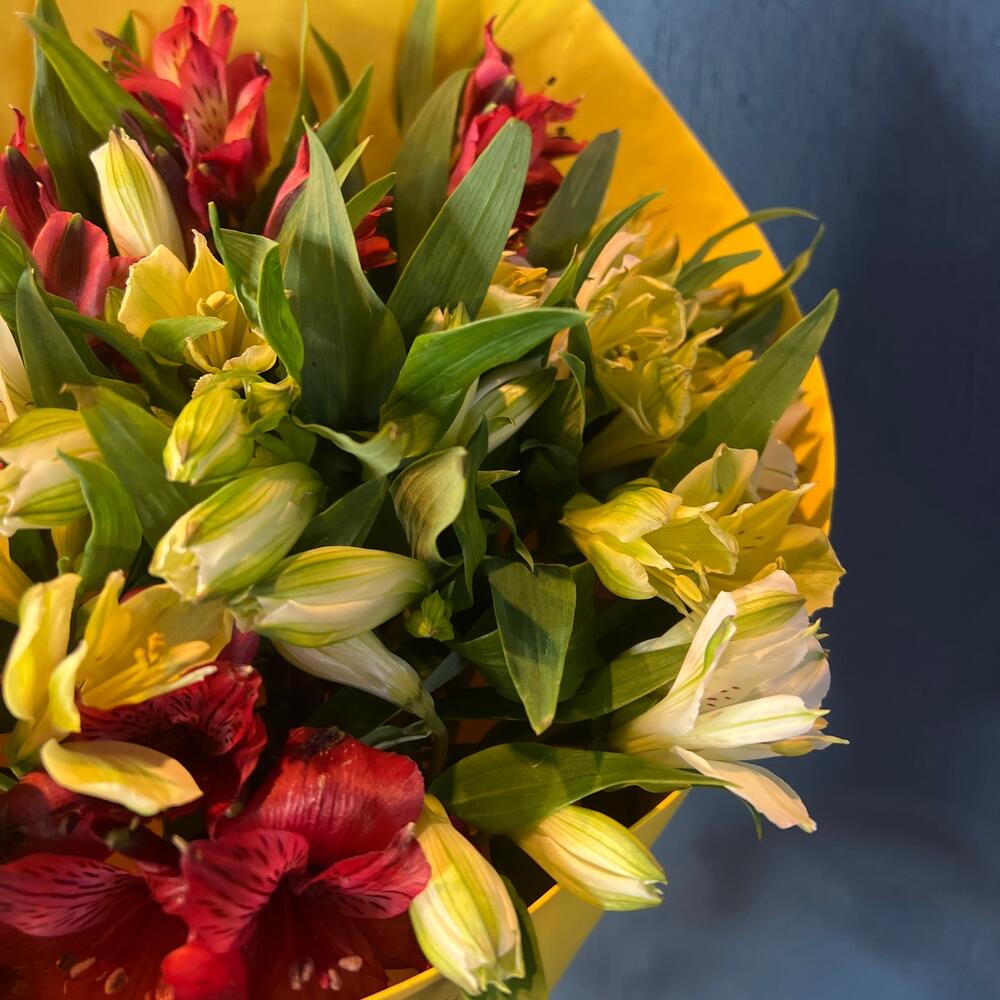 Альстромерия – 13 шт.Фоамиран (упаковка) – 1 шт.Лента атласная – 1 шт.