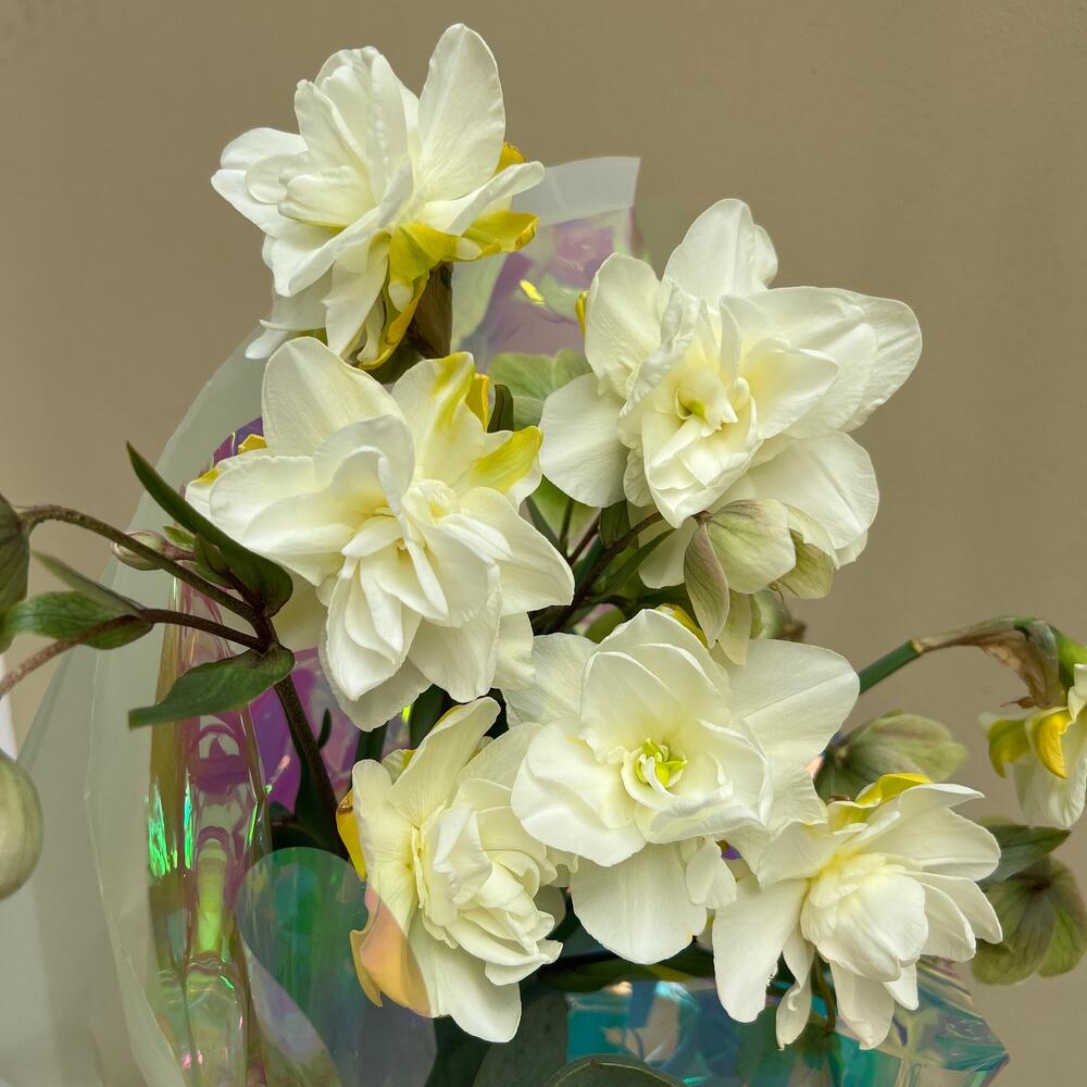 Нарцисс – 7 шт.Эвкалипт – 1 шт.Хелеборус – 2 шт.Упаковка дизайнерская – 2 шт.