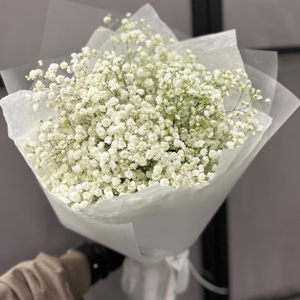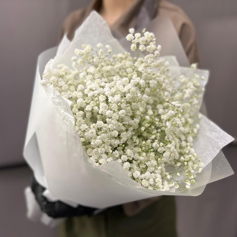 Гипсофила – 5 шт.Лента атласная – 2 шт.Тишью – 3 шт.Пленка матовая – 4 шт.
