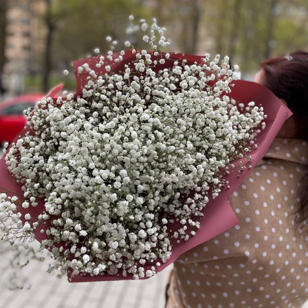 Упаковка – 1 шт.Лента атласная – 1 шт.гипсофила белая – 11 шт.