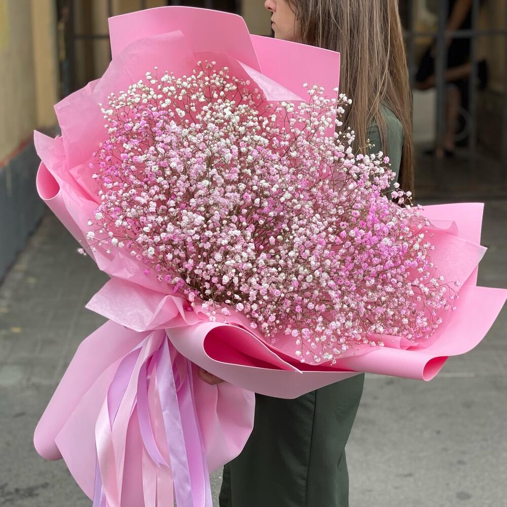 Гипсофила – 11 шт.Лента – 3 шт.Упаковка – 4 шт.Тишью – 4 шт.