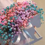 “Сиреневый туман” – композиция из гипсофилы в шляпной коробке