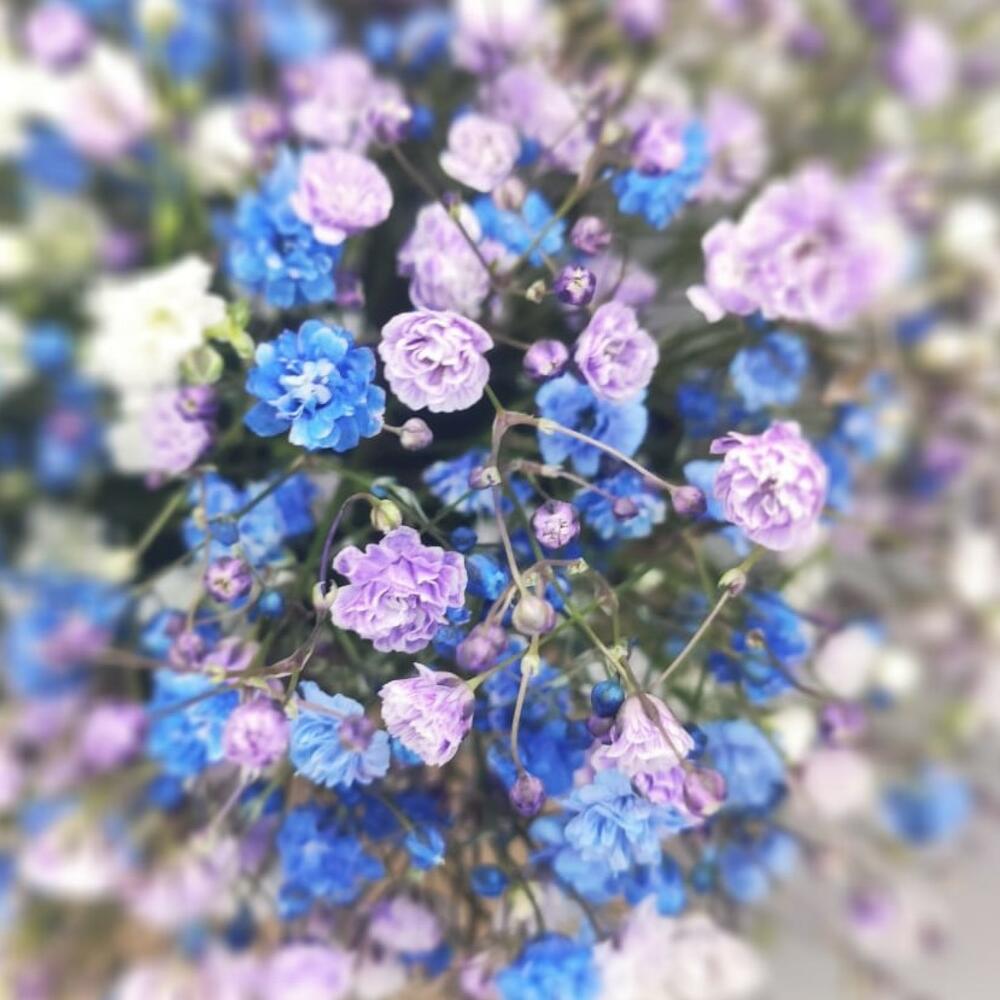 “Сиреневый туман” – композиция из гипсофилы в шляпной коробке