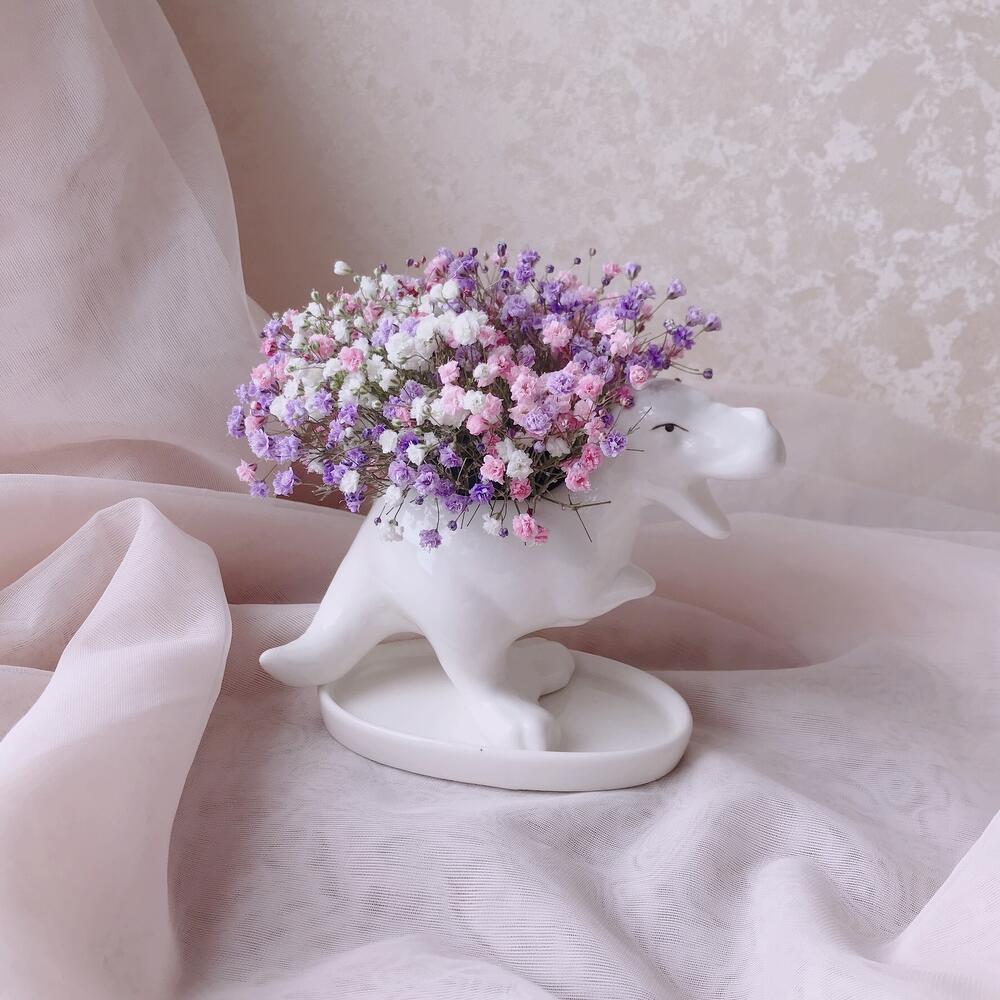 Очаровательная композиция из изысканных свежих цветов.Наполнена множеством соцветий радужной гипсофилы. Собрана в милом кашпо в виде динозавра «Тирекс»Композиция из гипсофилы – необычный подарок, который удивит своей невероятной стойкостью, при правильном и простом уходе. ❤ Ставить композицию в прохладном месте, избегая отопительных приборов и прямых солнечных лучей. ❤ Подливать немного воды в серединку. Гипсофила не вянет, а становится сухоцветом, сохраняя свой вид. Поэтому композиция продолжит радовать ещё очень долго! Почему выбирают нас? – Работаем на качество. – Бережно упакуем в транспортировочную пленку, чтобы защитить во время доставки от любых погодных условий. – Приложим инструкцию, как правильно ухаживать за цветамиСохраняйте товар в подборках, чтобы не потерять