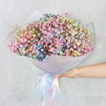 Гипсофила – 35 шт. Упаковка дизайнерская – 2 шт. Открыточка с вашими пожеланиями – 1 шт. инструкция по уходу за цветами – 1 шт.