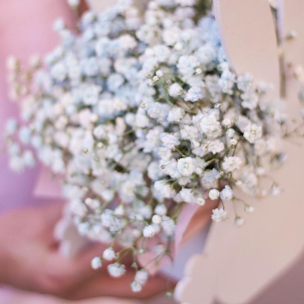 ящик зайка – 1 шт.Гипсофила голубая – 1 шт.