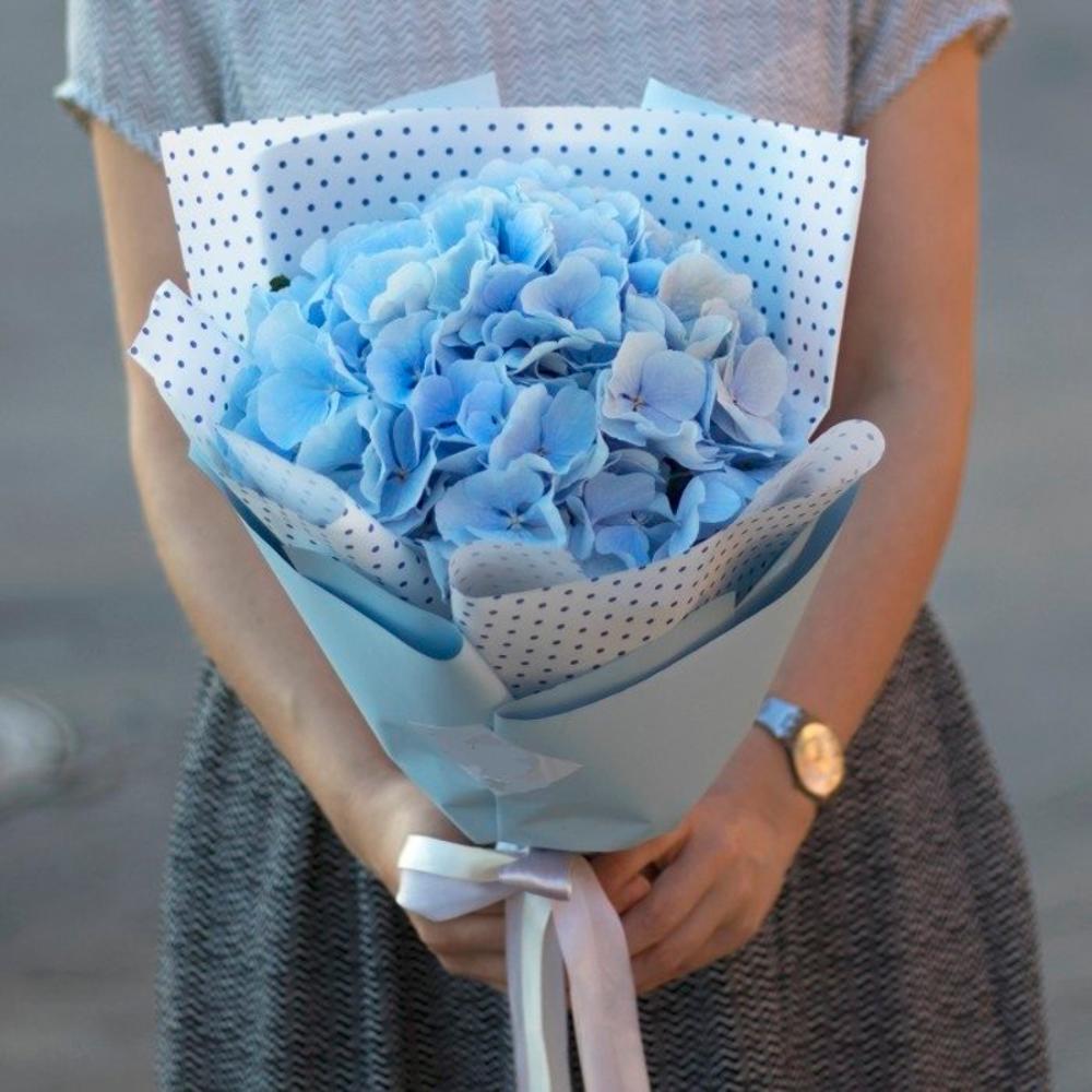 Гортензия голубая в дизайнерской упаковке “Жозефина”