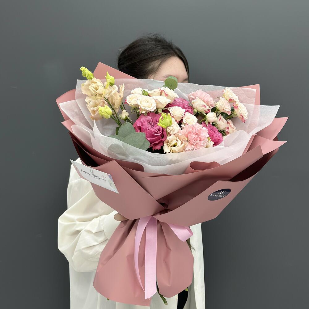 Гвоздики, Кустовые розы, Пионовидные розы, Розы