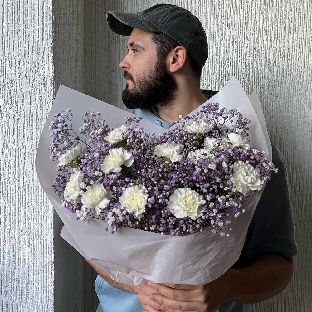 Гвоздики, Кустовые розы, Пионовидные розы, Розы