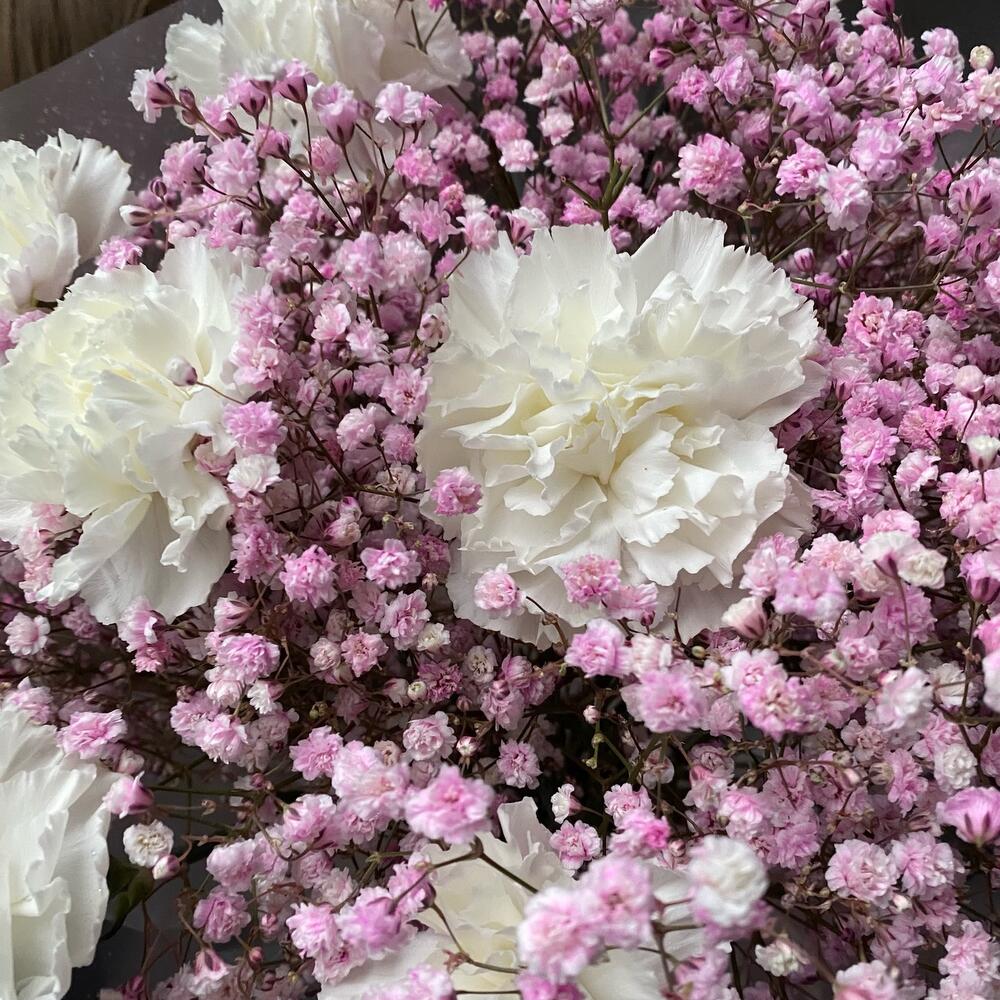 Букет для тех кто ценит стиль и минимализм Букет из диантусов и воздушной гипсофилы в упаковке с пышными лентами К заказу мы добавляем инструкцию по уходу за цветами и средство для продления жизни букета в подарок Вы можете дополнить заказ воздушными шарами или … Показать ещёкоробкой сюрпризом , ознакомтесь со всем ассортиментом нашего магазина