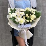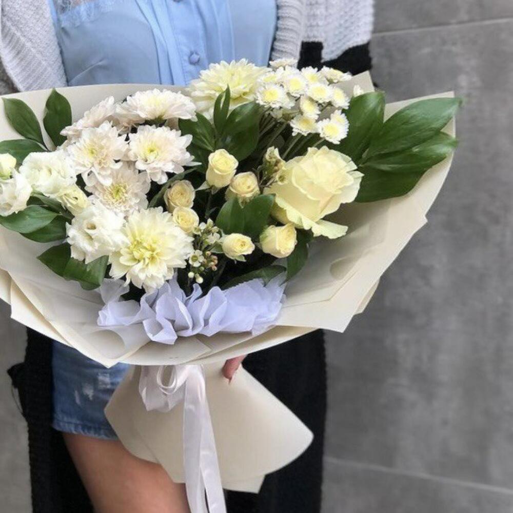 Букет из роз белых и Сантини