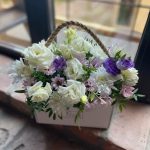 “Сиреневый туман” – композиция из гипсофилы в шляпной коробке