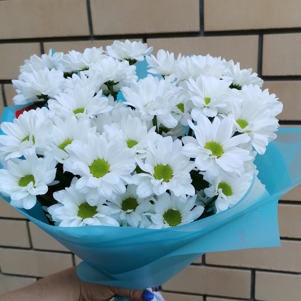 Хризантема кустовая – 7 шт. Лента атласная – 1 шт. Упаковка дизайнерская – 2 шт.