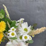 Альстромерия – 1 шт.Хризантема – 1 шт.Кашпо металлическое – 1 шт.Оазис флористический – 1 шт.Одуванчик – 2 шт.