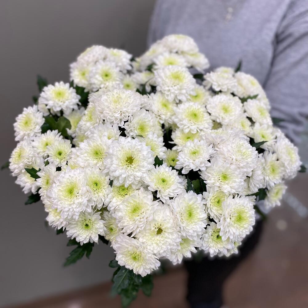 Хризантема кустовая – 13 шт.Пленка прозрачная – 1 шт.Лента атласная – 1 шт.