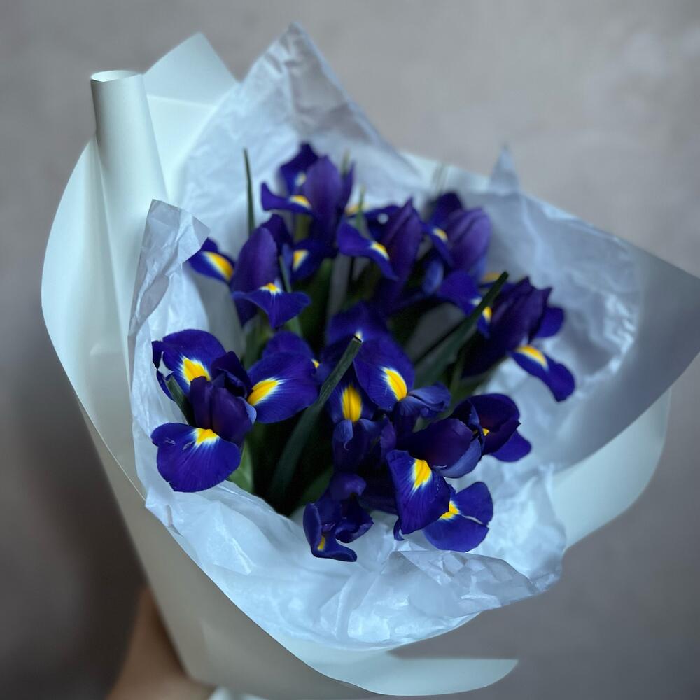 Ирис – 9 шт.декоративная упаковка – 1 шт.Атласная лента – 1 шт.