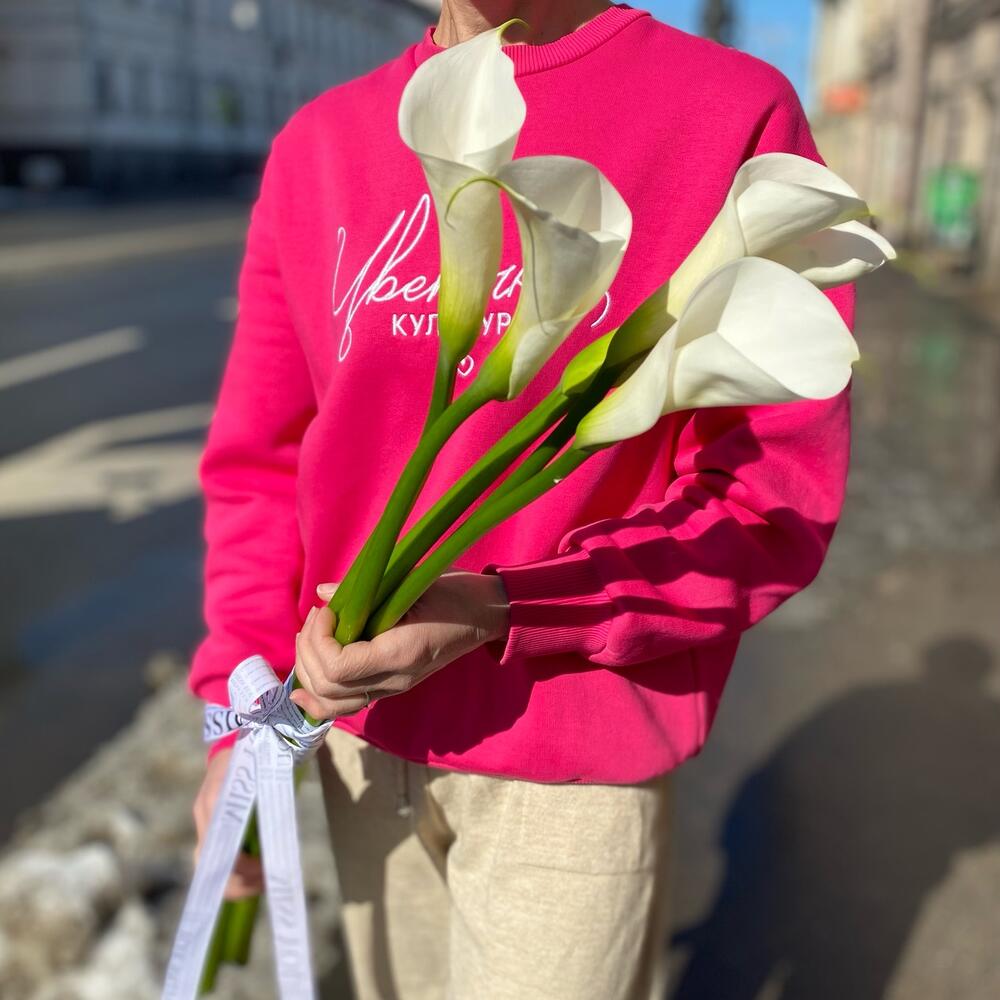 Лента атласная – 1 шт.калла белая крупная – 5 шт.