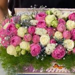 кустовые розы – 11 шт. Гипсофила – 2 шт. Лимониум – 2 шт.