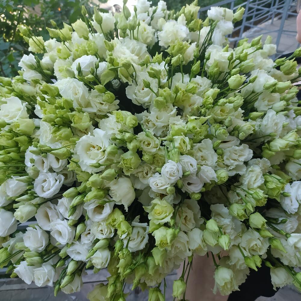 эустома белая – 101 шт.Упаковка – 1 шт.Лента атласная – 1 шт.