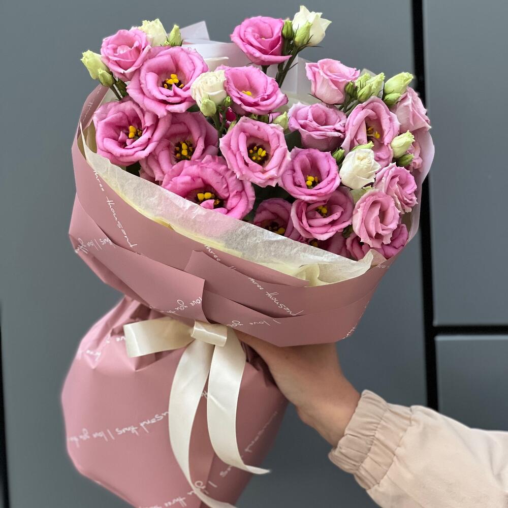 эустома розовая – 7 шт. Оформление – 1 шт.