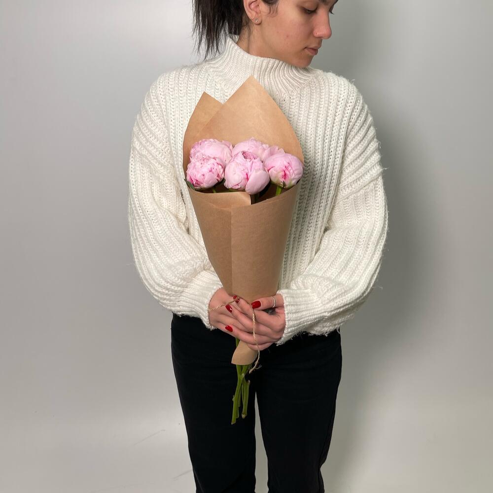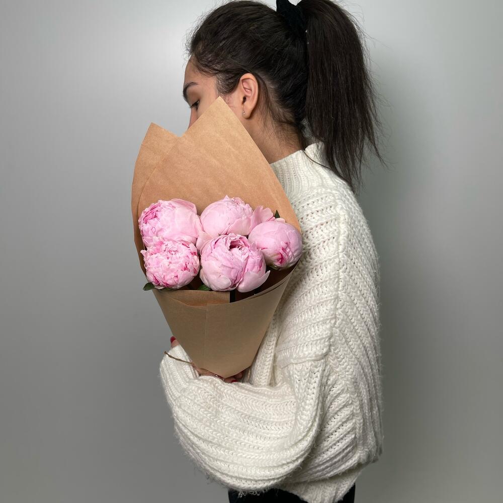 5 розовых пионов в крафте