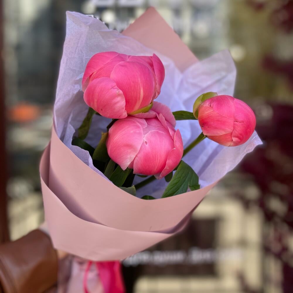 Пион Коралл Шарм (Coral Charm) – 3 шт.Лента атласная – 1 шт.Упаковка дизайнерская – 2 шт.