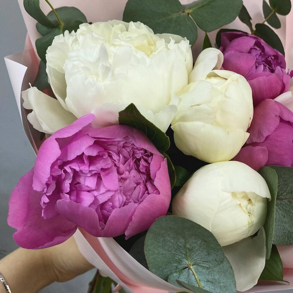 Букет с пионами и эвкалиптом