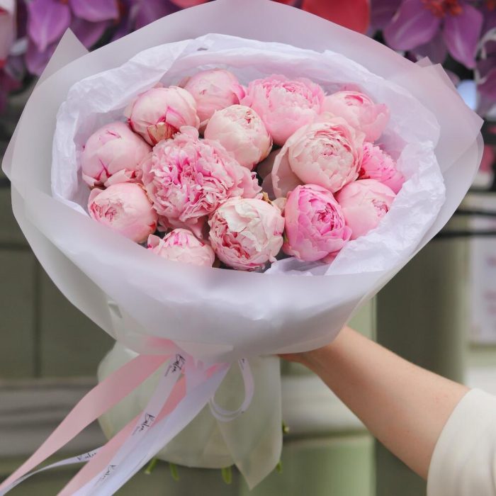 “Пиономания”: 13 розовых пионов в упаковке