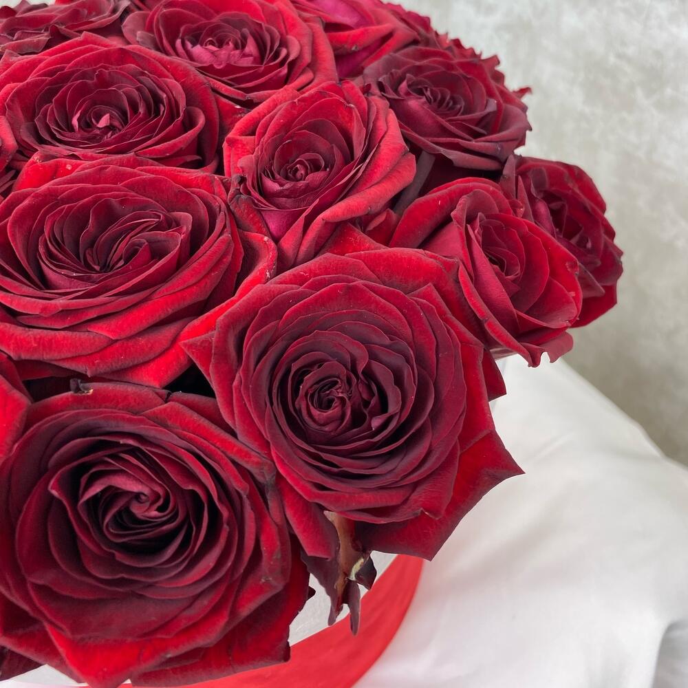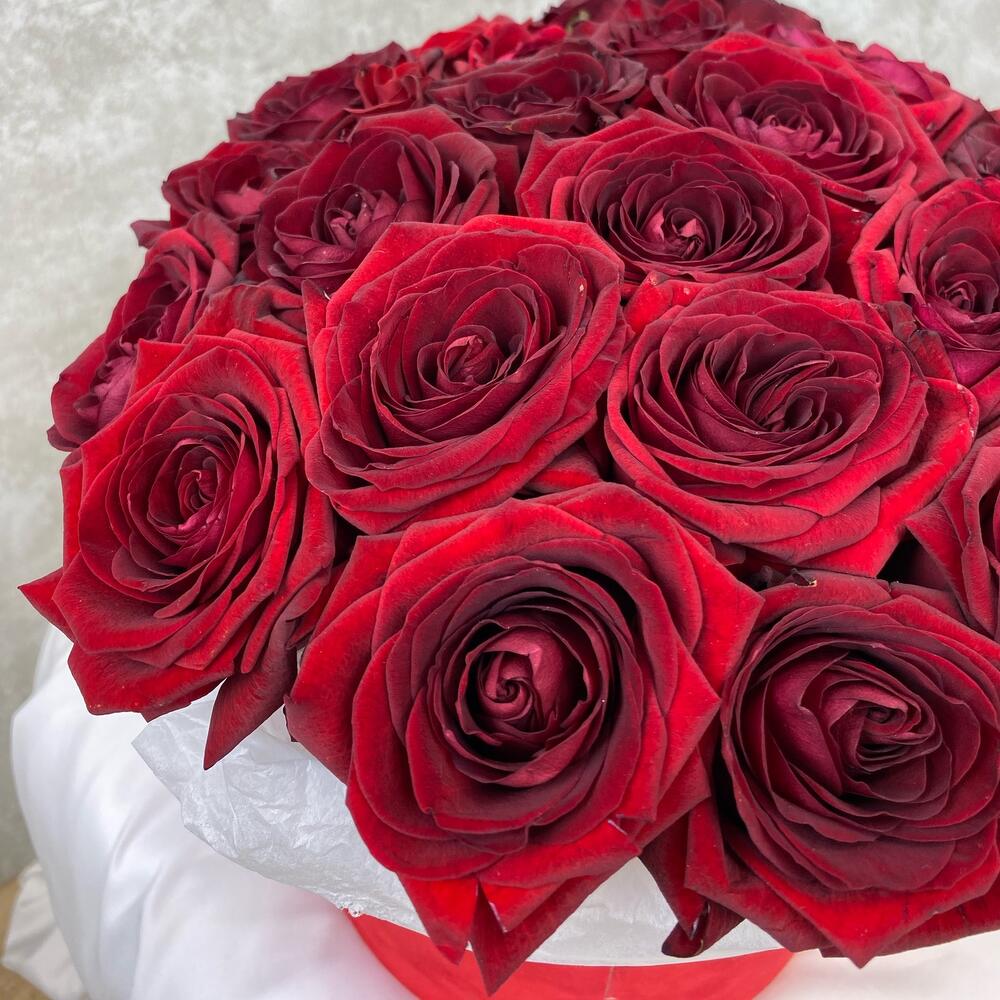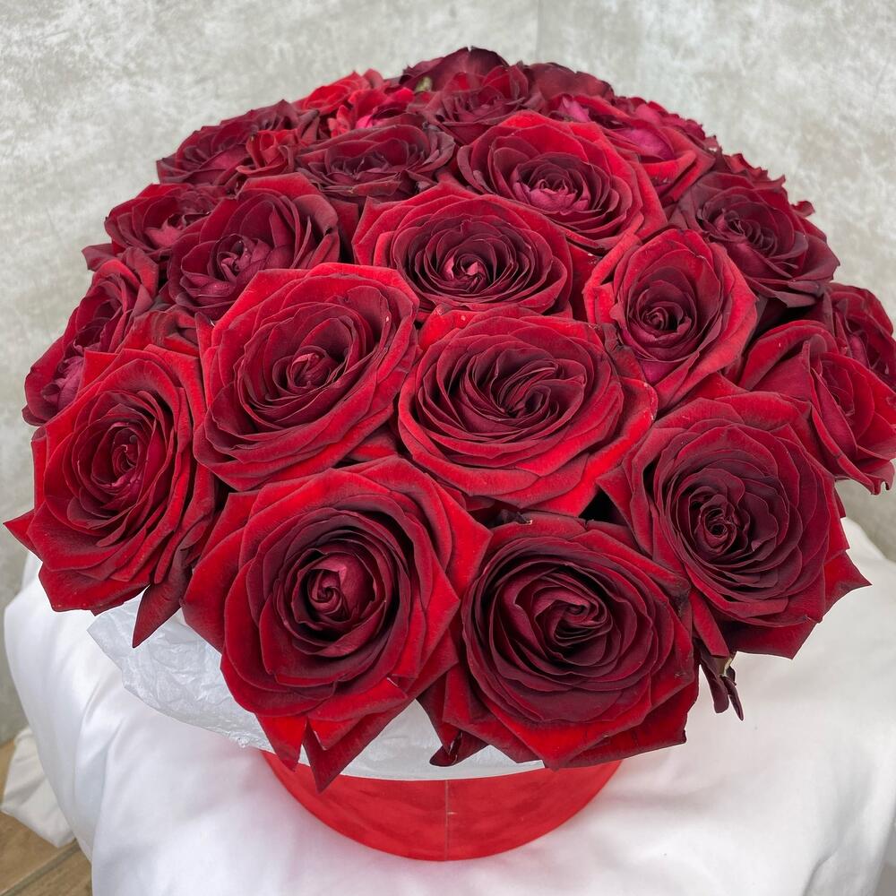 Роза – 27 шт.Бархатная коробка – 1 шт.Оазис – 1 шт.