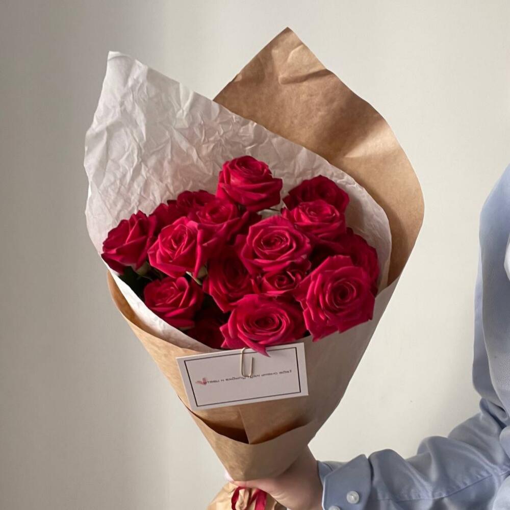 Красная кустовая роза – 3 шт.Крафт упаковка – 1 шт.