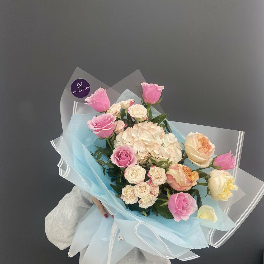 Гвоздики, Кустовые розы, Пионовидные розы, Розы