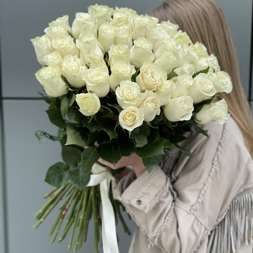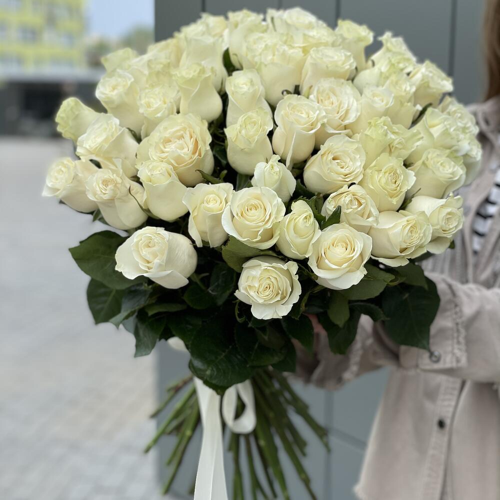 Метки: 14 февраля, 51 роза, Белые розы, от 5000 руб, Роза 50 см
