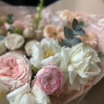 Букет из пионовидныз роз, ранункулюсов и тюльпанов