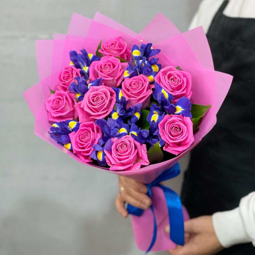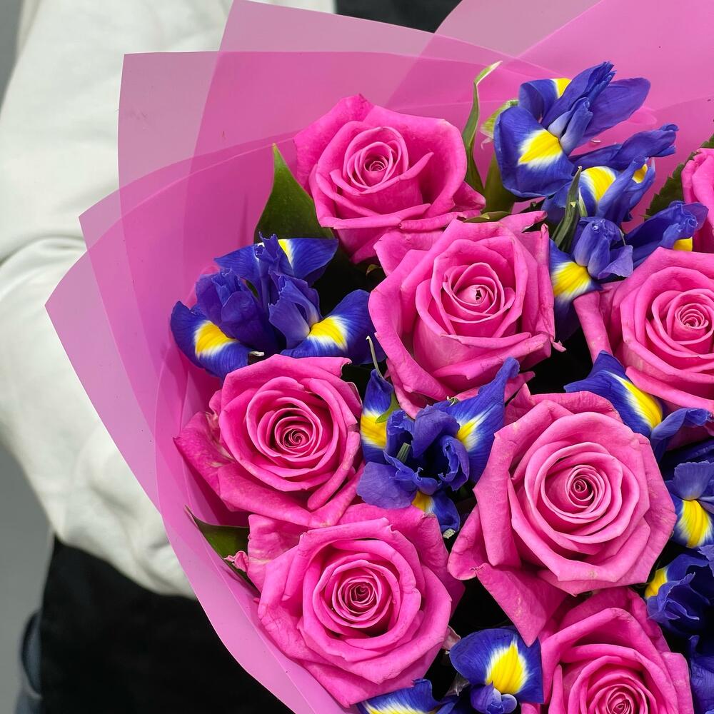 Букет из роз и ирисов . Розы. Ирисы