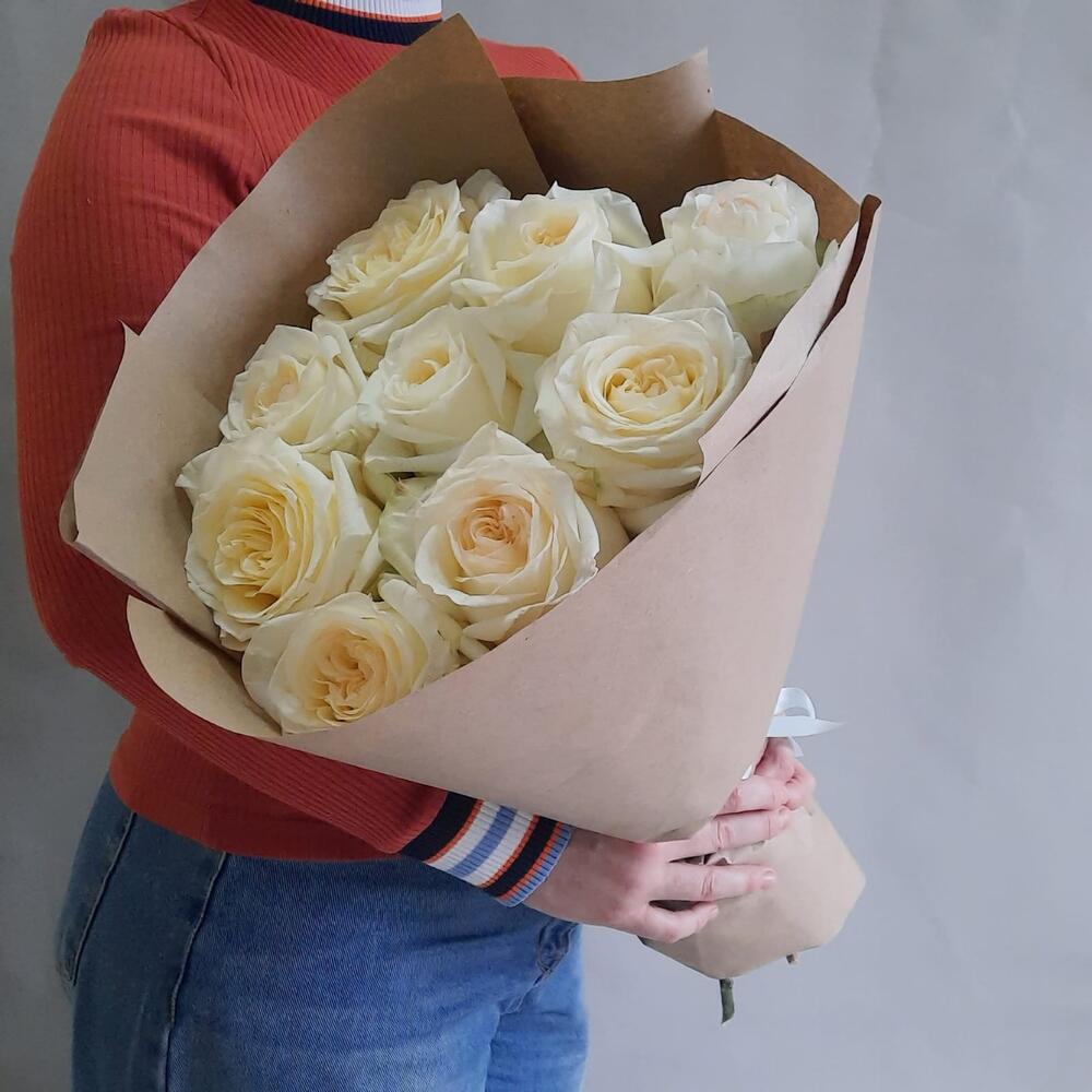 роза канделайт – 9 шт.Упаковка крафт – 1 шт.Лента атласная – 1 шт.