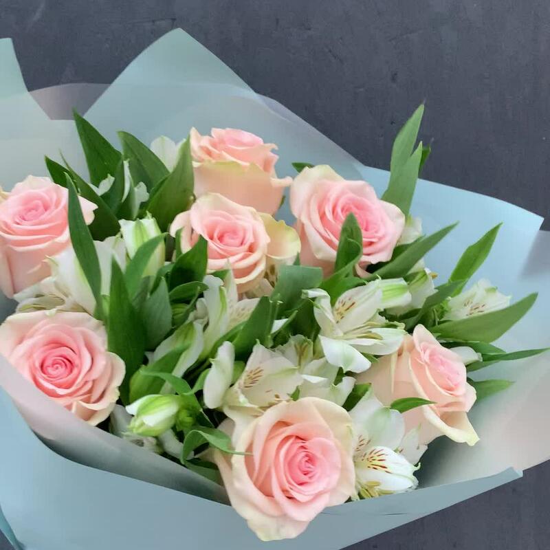 Роза – 7 шт.Альстромерия – 8 шт.Упаковка дизайнерская – 1 шт.