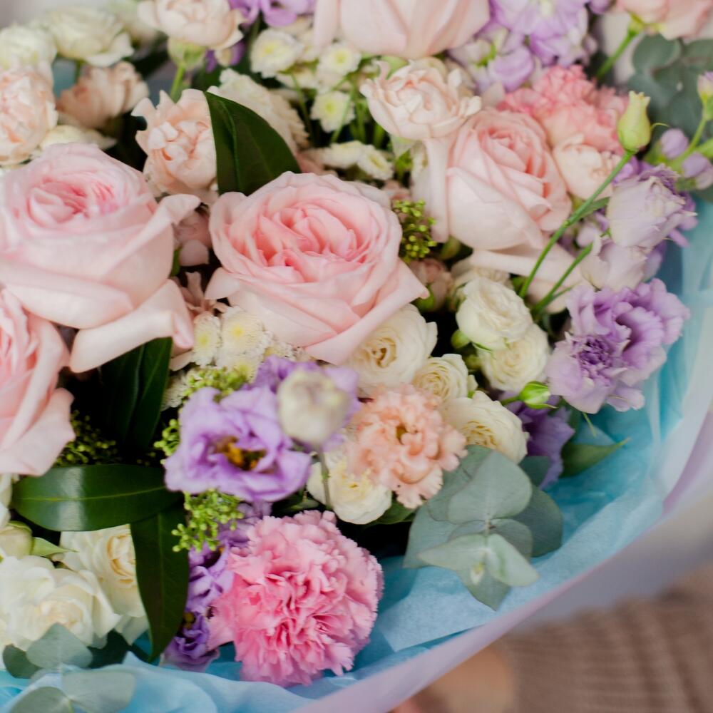 Категорий: Гвоздики, Кустовые розы, Лизиантусы, Пионовидные розы, Розы, Хризантемы