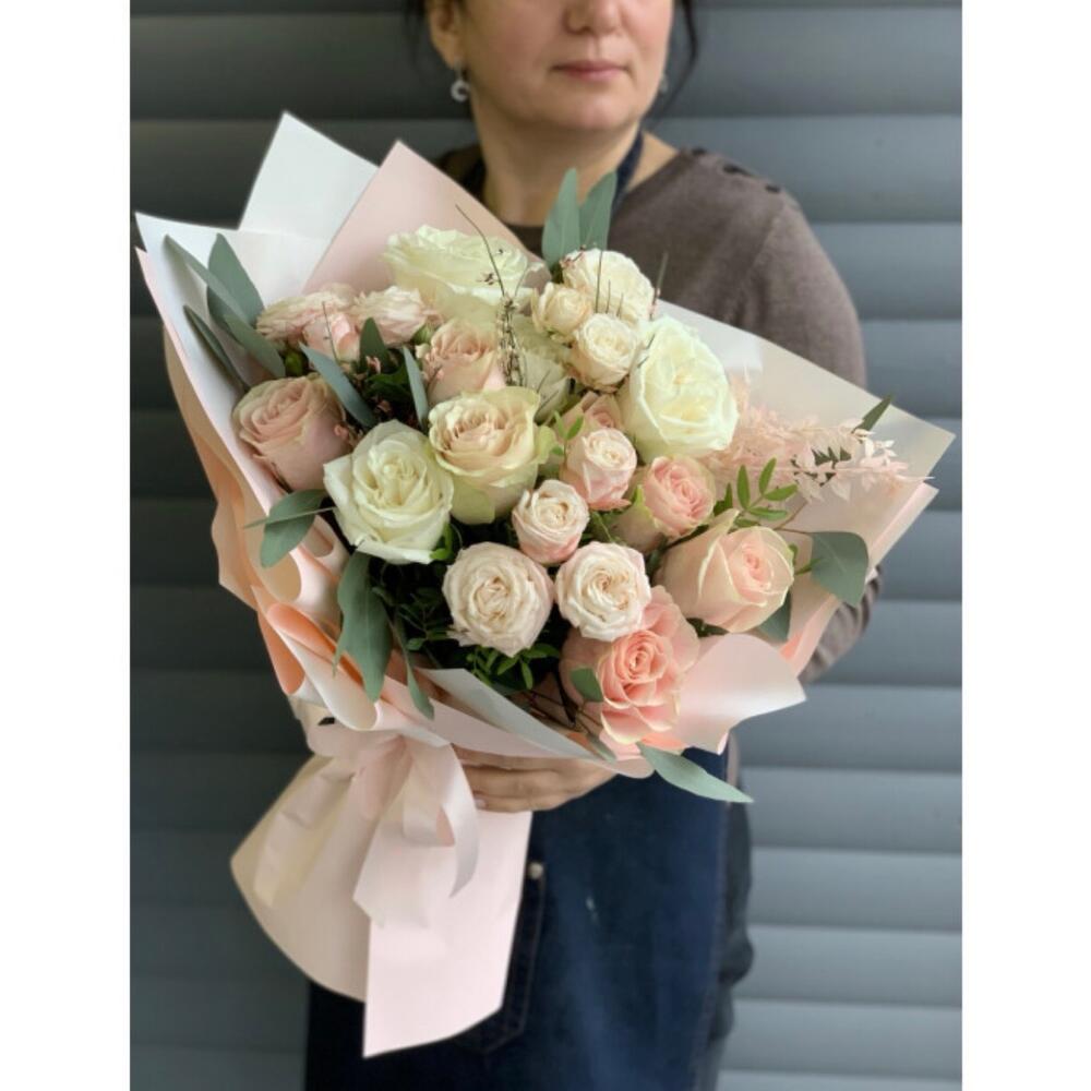 Гвоздики, Кустовые розы, Лизиантусы, Пионовидные розы, Розы