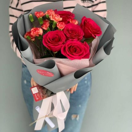 Гвоздики, Кустовые розы, Пионовидные розы, Розы