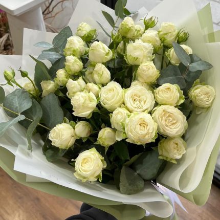 Кремовая кустовая роза – 7 шт. Упаковка дизайнерская – 1 шт. Открыточка с вашими пожеланиями – 1 шт. инструкция по уходу за цветами – 1 шт.