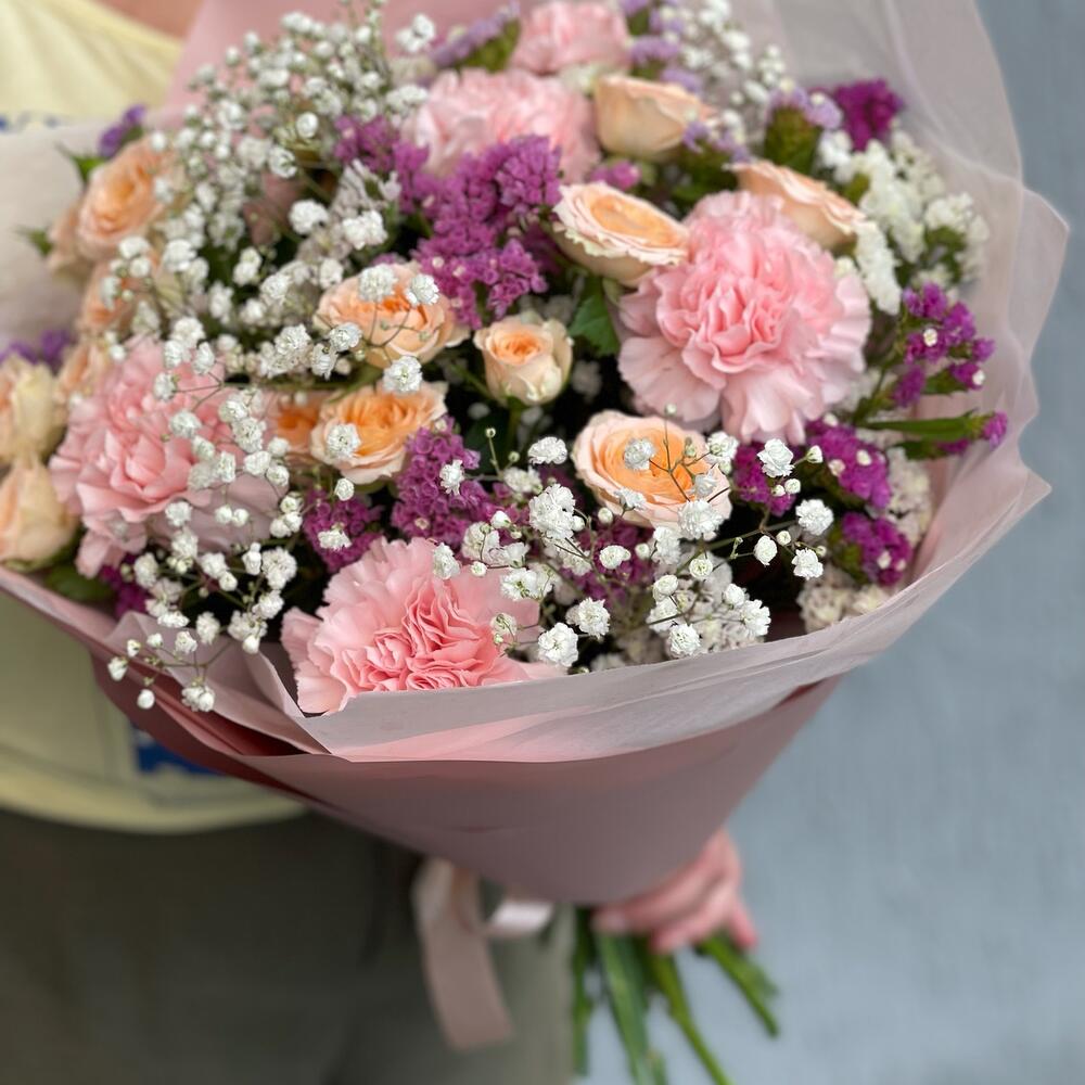 Гвоздики, Кустовые розы, Лизиантусы, Пионовидные розы, Розы