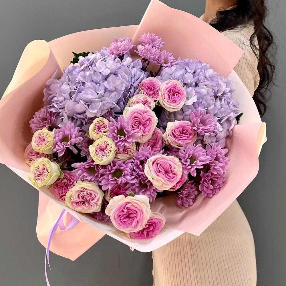 Гвоздики, Кустовые розы, Пионовидные розы, Розы