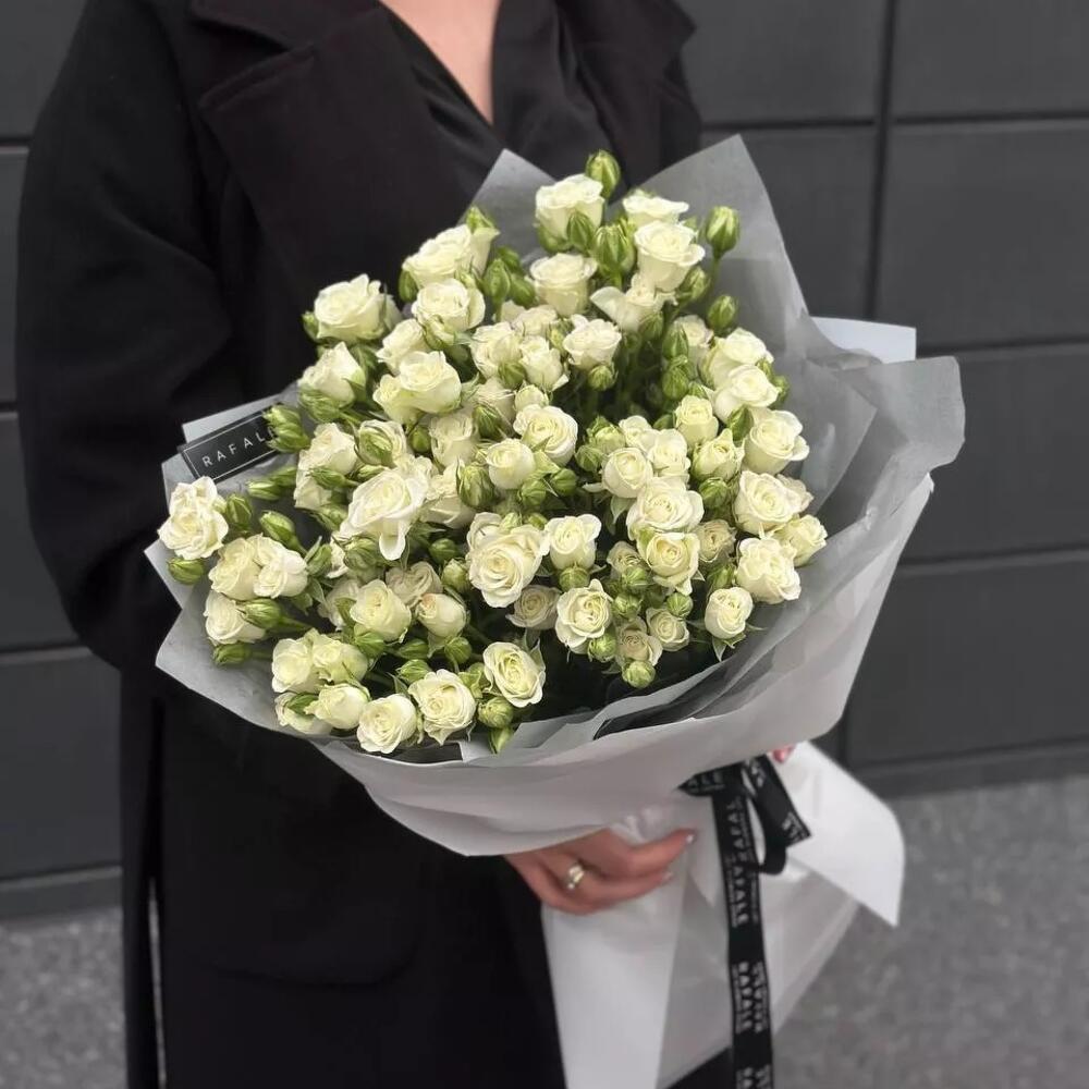 Моно букет "Mono 14.1" состоит из голландских спрей (кустовых) роз в оформлении. Выбрав букет от RAFALE, Вы скрасите день обладательницы букета и подарите ей незабываемые эмоции.